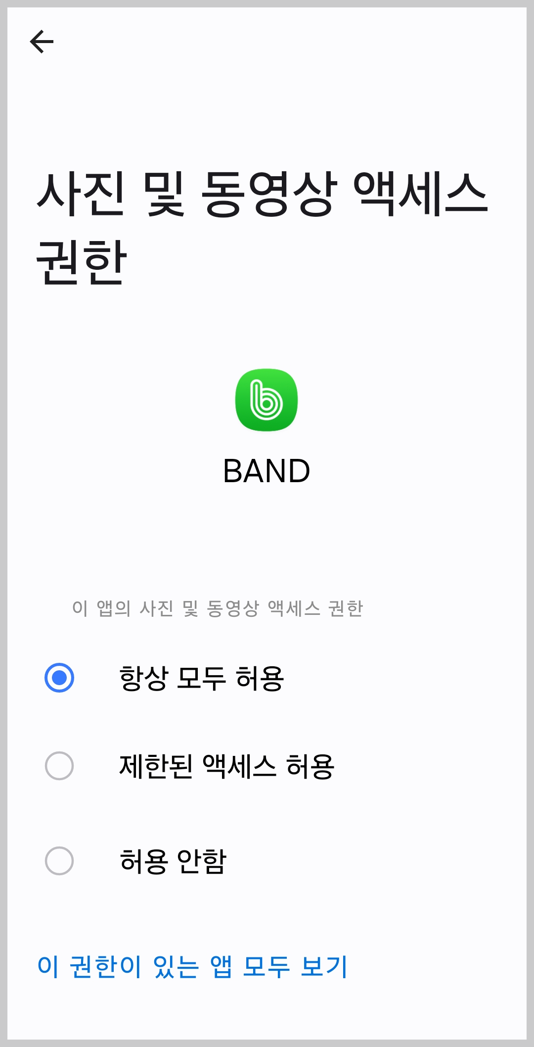 6. '사진 및 동영상 엑세스 권한'을 '항상 모두 허용'으로 체크해주세요!