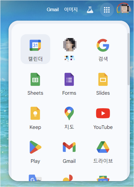 크롬 등 인터넷 브라우저를 열고 구글 사이트에 들어가면 우측 상단에 점9개 보입니다.