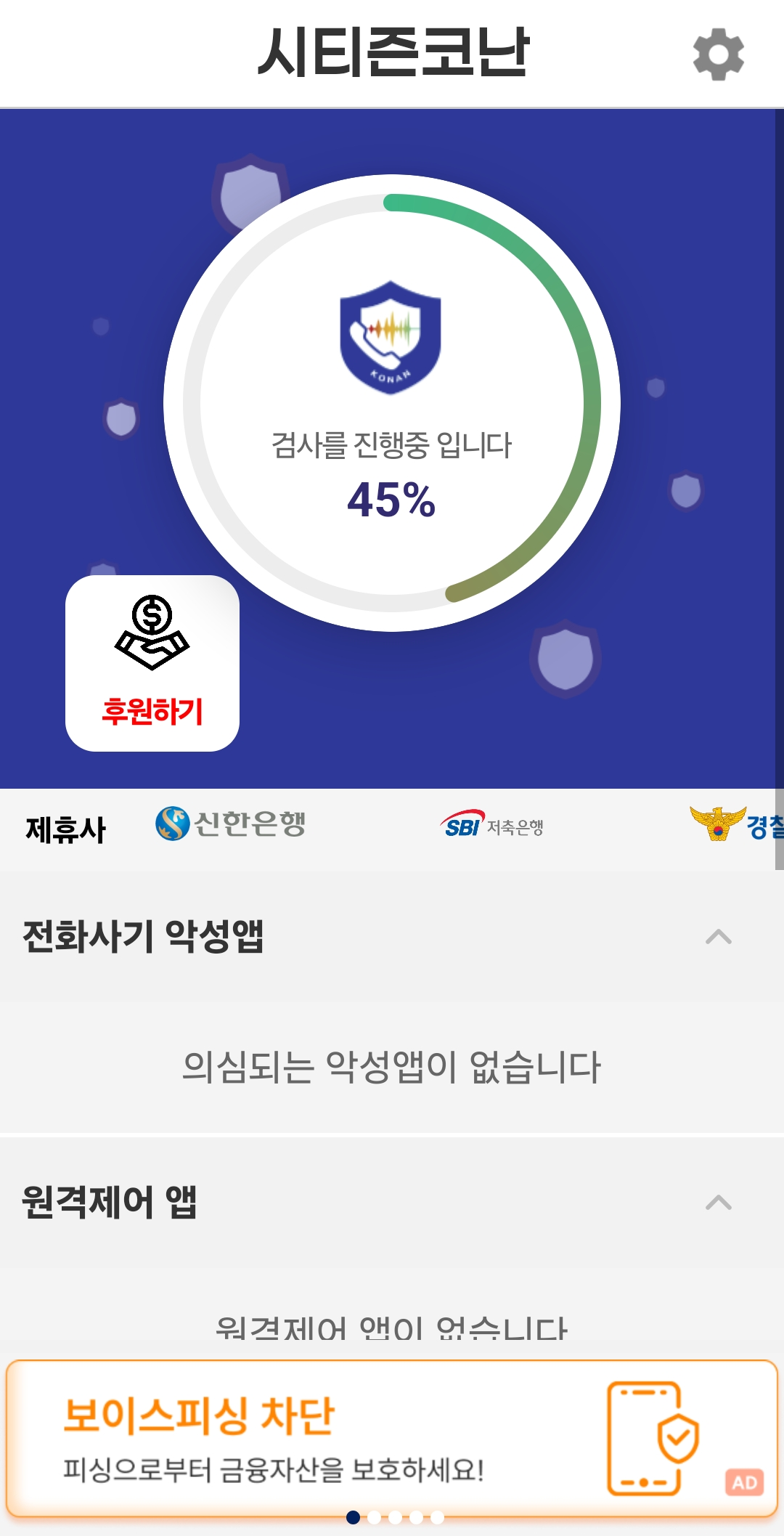 전화사기 악성앱 및 원격제어 앱이 있는지 확인 가능합니다.