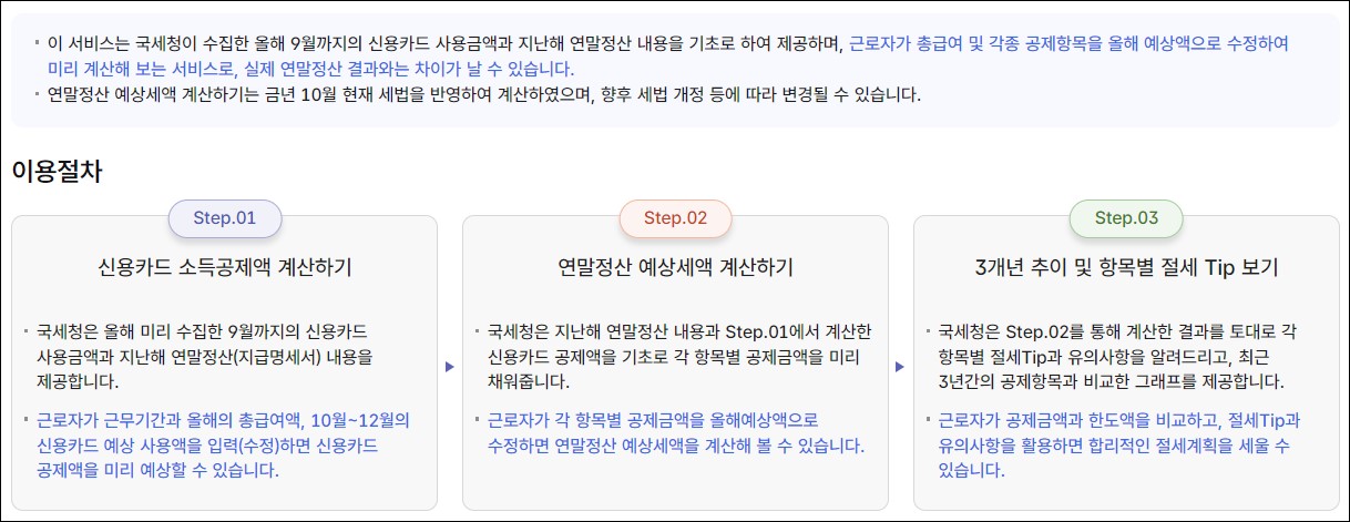 이 서비스는 내년 연말정산의 세액을 미리 확인한 후