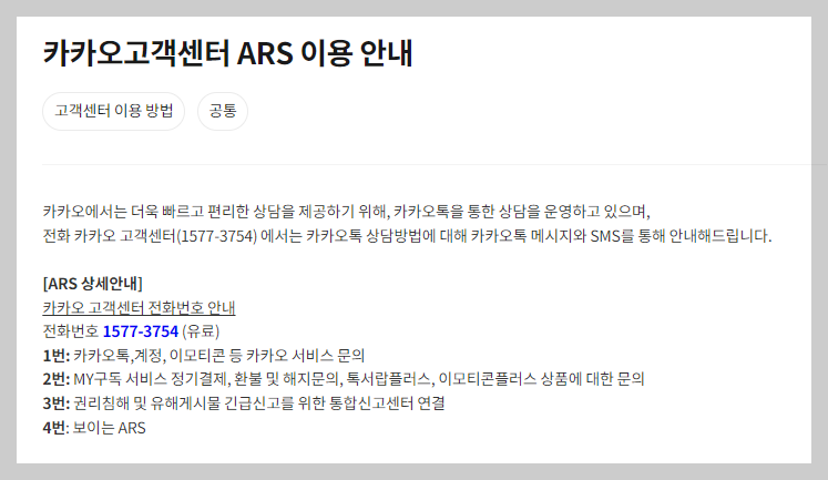 카카오 고객센터도 ARS를 운영하고 있습니다.