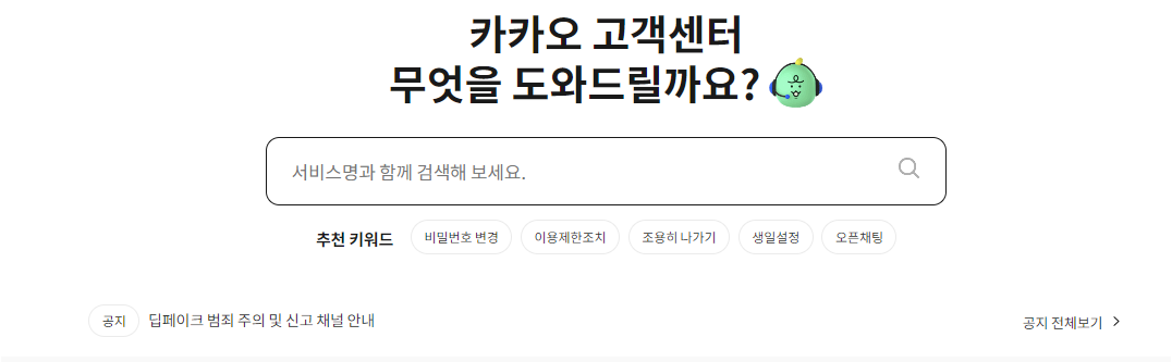 앞서 소개한 https://cs.kakao.com/ 웹사이트를 통해 효율적이고 빠르게 문제를 해결할 수 있습니다.
