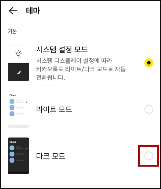카카오톡 다크 모드로 설정하는 방법