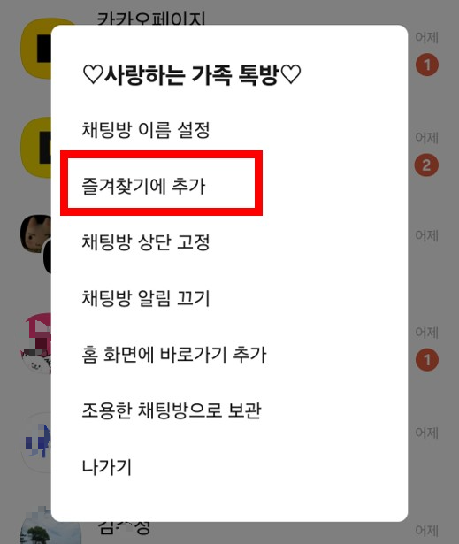 자주 대화를 하는 중요한 사람이나 중요한 채팅방을 즐겨찾기에 추가하고 채팅방 상단에 고정해서