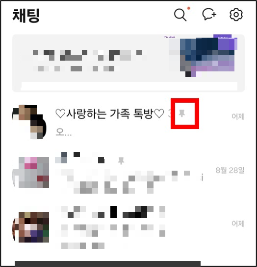 이제는 '채팅' 메뉴에서 상단에 고정하는 방법을 알아볼게요.