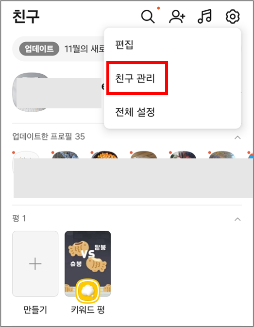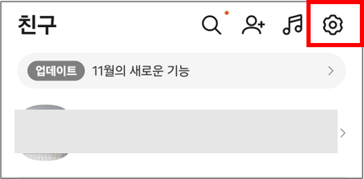 1) 친구 _ 상단 톱니바퀴 '설정'