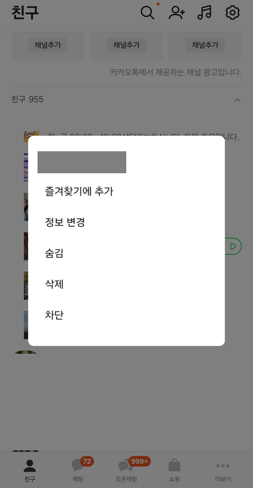 카카오톡 친구를 숨김 / 삭제 / 차단하는 방법