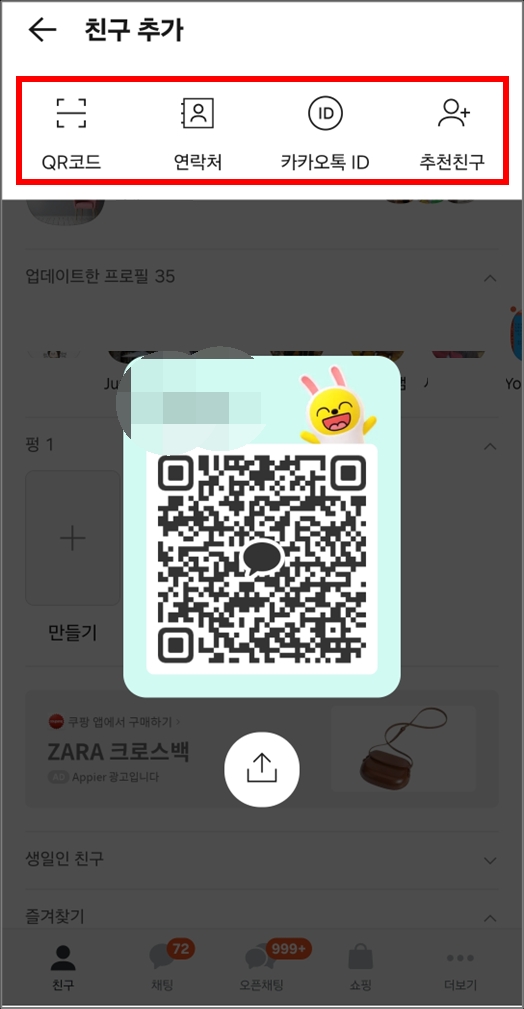 2. 카카오톡 QR코드를 스캔하거나 카카오톡 '친구찾기' 기능을 이용해 다른 사람들과 소통할 수도 있습니다.