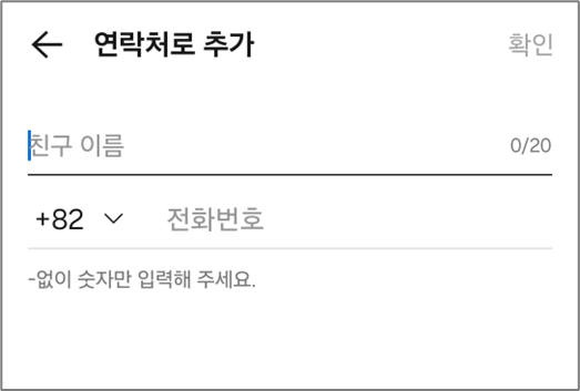 만약 연락처만 알고 있는 사람이다~ 싶으면 이렇게 연락처로 추가하면 됩니다.