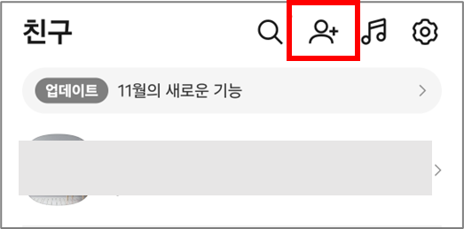 1) 카톡앱을 열고 메인 화면에서 맨~위에 사람+ 아이콘을 눌러주세요