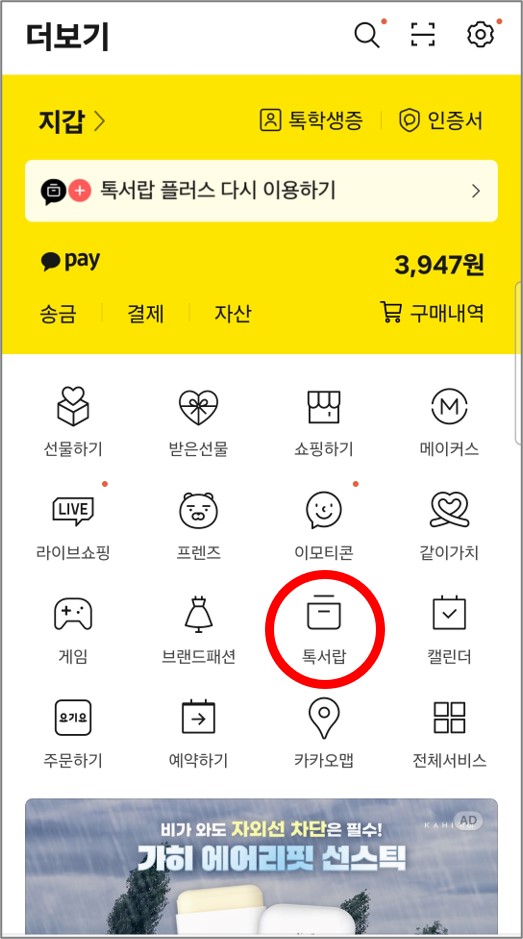 톡서랍에 들어가는 건 정말 간단해요.