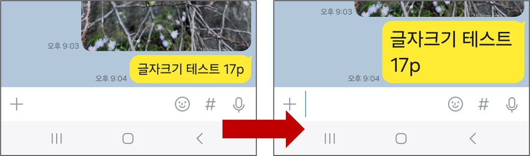 톡 대화를 하다보면 글자가 너무 작아 불편할 때가 있는데요~