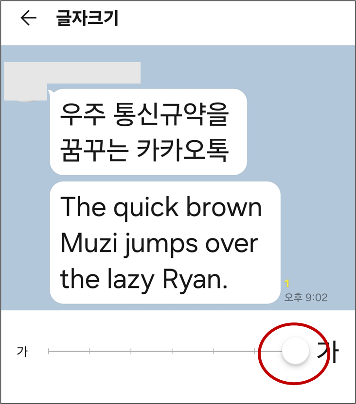 5. 글자크기를 조절하는 흰색 원버튼을 좌우로 이동해보세요.