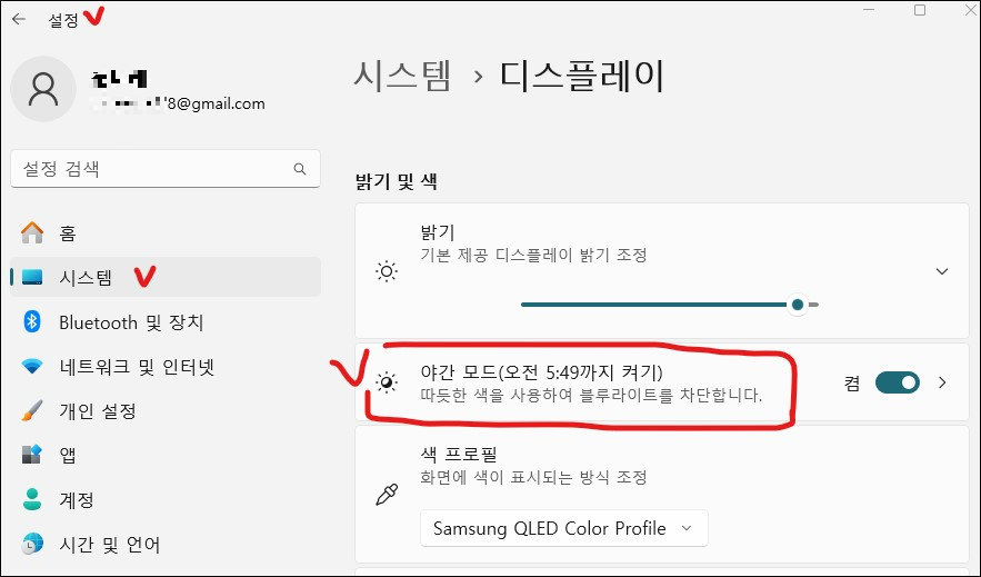3. '야간 모드' 설정 방법