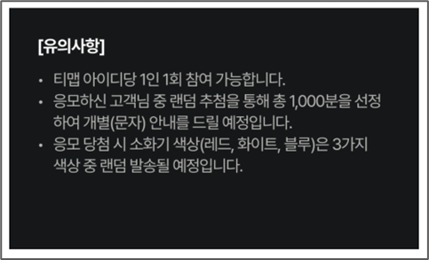 * 당첨 안내 : 12월 10일 / 당첨자 개별 문자 안내