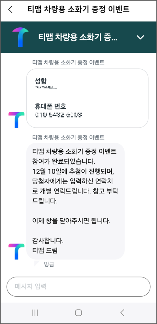 티맵 차량용 소화기 이벤트에 당첨 확률이 낮을 겁니다.