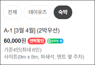 2. 비용 : 데이유즈 & 숙박 _ 6만원 (25년 3월 예약 시점)