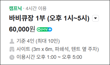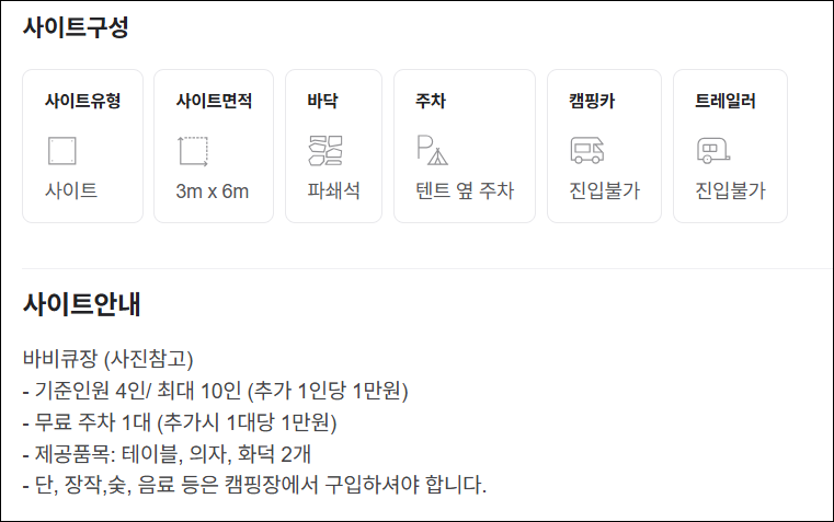 🎈구성 : 오토캠핑, 차박전용, 바베큐장