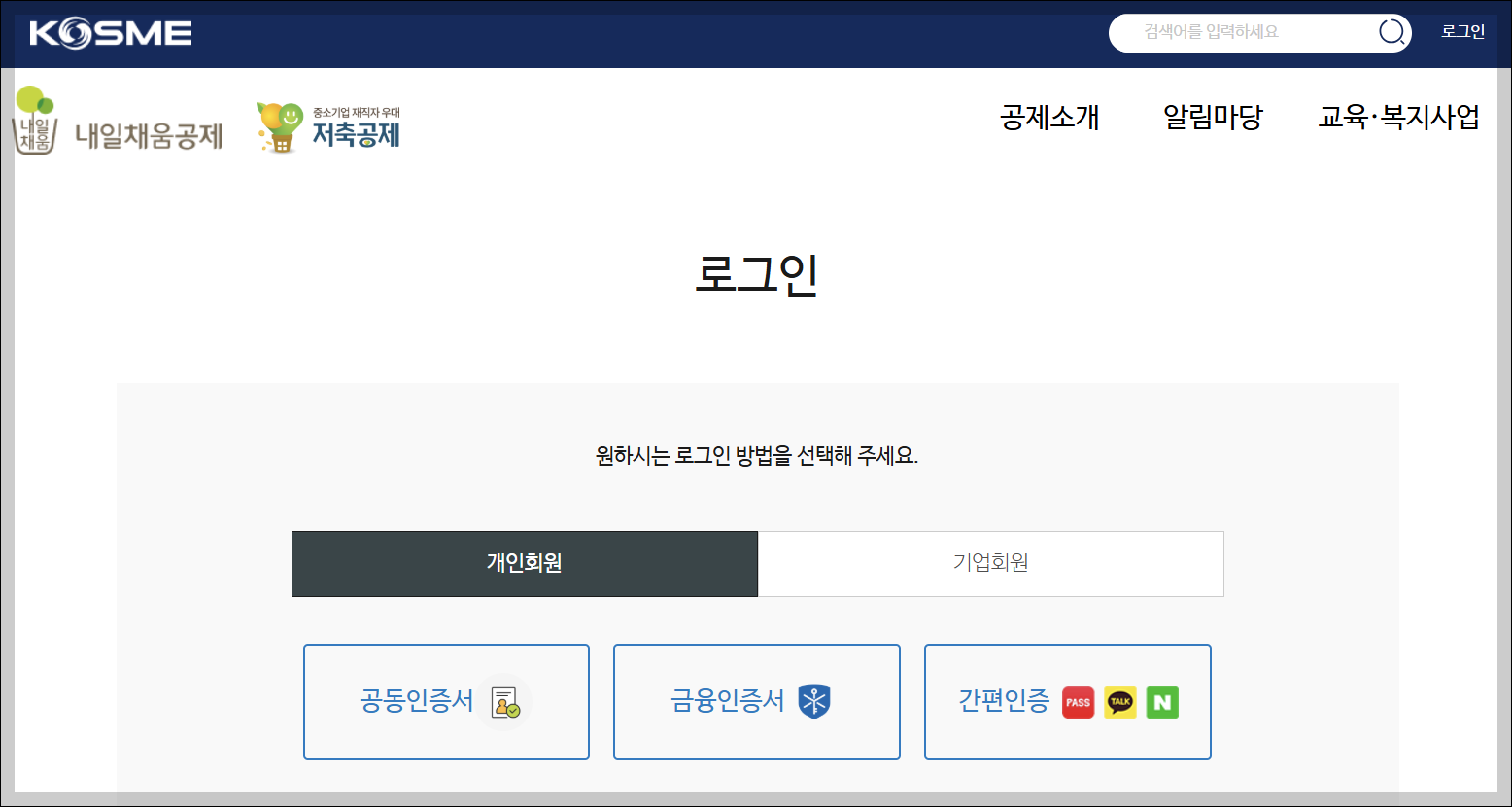 1. 중소벤처기업진흥공단 내일채움공제 홈페이지 방문